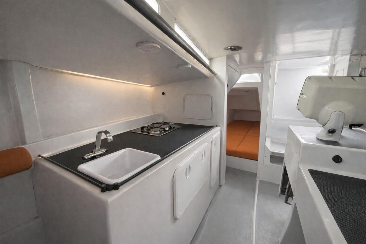 L’intérieur du Code 1 assure tout le confort nécessaire aux croisières en famille ou entre amis, dans un style épuré et minimaliste cher à la marque.