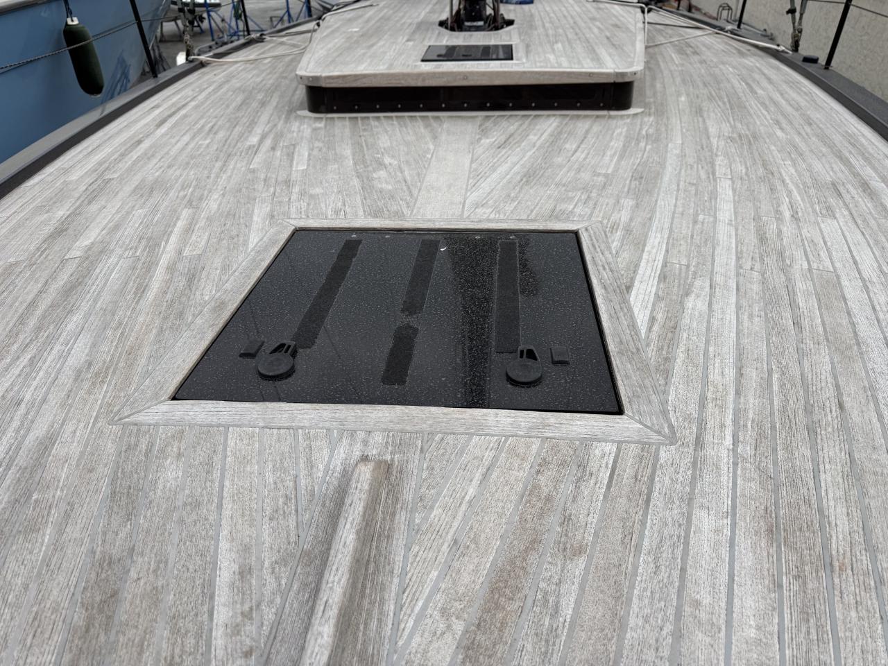 Passavants vierges, teck omniprésent, gréement tout carbone, poids limité, couchettes douillettes : Un voilier de très grande élégance…